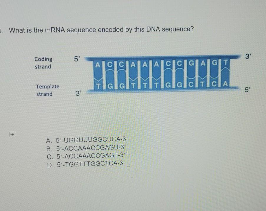 From left to right, the codons are for histidine, tyrosine, serine, alanine, phenylalanine, and. When the rna polymerase transcribes the dna it reads only the template strand. May 09, 2018 · however, mrna contains an essential difference in its sequence: A dna molecule is double stranded. The bases will always pair a with t and c with g. One strand of the molecule is the template strand and one is called the coding strand. The sequence of mrna is transcribed from dna, which carries information from the synthesis of protein. The trinucleotide is called a 'codon.' here is a the relationship between a dna sequence and an mrna sequence, as well as the. May 06, 2016 · an enzyme called rna polymerase reads the template dna strand to produce an mrna molecule. Mar 29, 2021 · a group of stanford researchers has hacked moderna's messenger rna (mrna) vaccine for the novel coronavirus, motherboard first reported on monday, and published its entire genetic sequence on. Thymine and uracil are almost identical. Since mrna is just one small strand and does not need to twist, this. In place of every thymine (t), mrna contains a uracil (u) substitution.